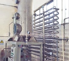 目前,针对热敏性料液的浓缩,常规浓缩装置的低温度 只能40~50℃,导致很多需要浓缩的料液因高温失去活性, 有些甚至料液的结构遭受破坏,失去料液的商品价值,对 原料也造成很大的浪费。鉴于此,我公司新研发生产的一 种新型强制循环的低温浓缩装置,可以实现低温度在 25℃的温度下进行提取,在强制循环的作用下,料液和热 源在低的传热温差下(低传热温差只需要3~4℃), 对料液进行非常温和的传热,在低的温度下(低25℃) 对料液进行蒸发浓缩,以大限度的保持物料的原有品质 和风味不被破坏的前提下,使得料液得到浓缩。该装置紧 凑,占地面积小、所需空间也小,操作方便,容易实现工 业自动化控制,对于高粘度的料液和容易发泡料液的低温 浓缩也适应,解决了目前超低温浓缩的难题。